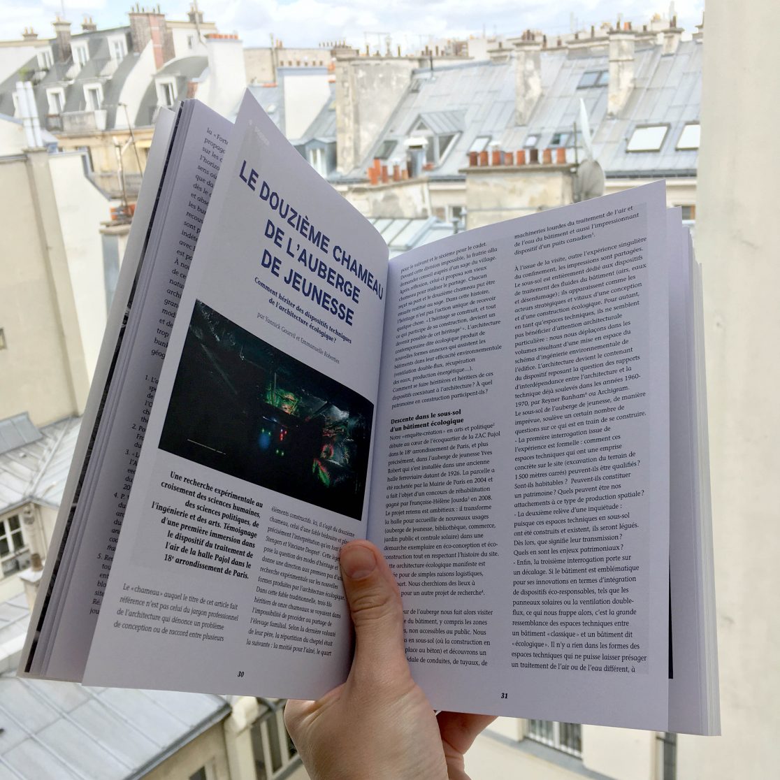 « Une recherche expérimentale au croisement des sciences humaines, des sciences politiques, de l’ingénierie et des arts. Témoignage d’une première immersion dans le dispositif du traitement de l’air de la halle Pajol dans le 18e arrondissement de Paris.
