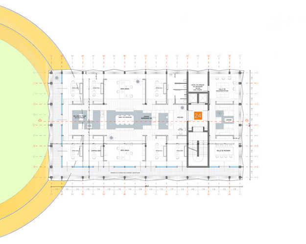 L’identité du château d’eau est préservée: sa géométrie structurelle pure et élancée. Dans un registre des greffes horticoles, le projet pourrait s’apparenter au procédé de greffe dite « par approche ». Il ne s’agit pas de faire vivre le « greffon » au détriment du « porte-greffe » mais de fusionner deux entités par simple contact. Dans ce sens, les deux bâtiments forment un couple en symbiose, une association durable qui est profitable à chacun d’eux.